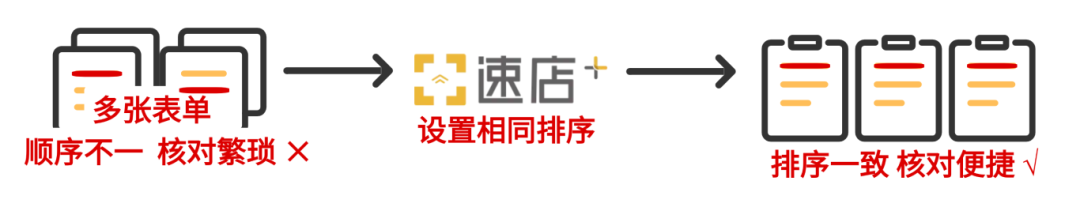 分拣单、出库单、收货单的排序经常不一致,核对起来总要多花时间反复寻找和对照,不仅效率太慢,还经常容易弄错?针对这个问题,速店+新增功能:
