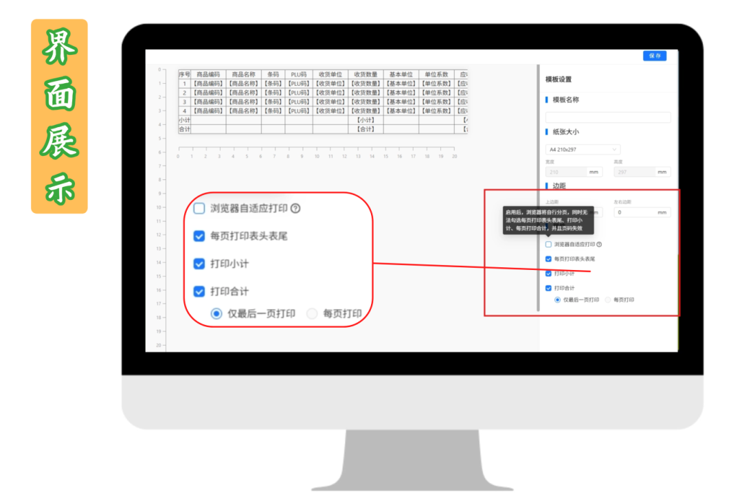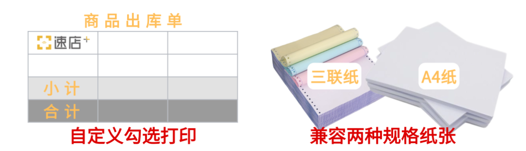 打印单据时总有不同的需求,但小计、合计和表头表尾总不能随心选择?而且浏览器也没有自适应,想打印还要费心选纸?针对这个问题,速店+新增功能: