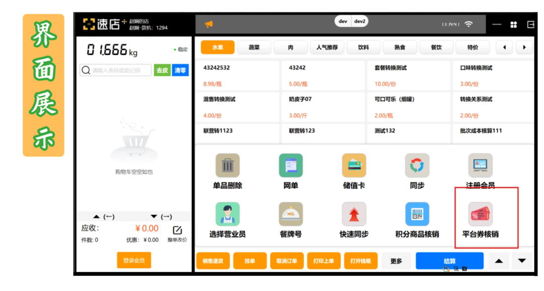👉平台券核销:无论是哪个平台的券,直接扫描券码,自动关联商品至结算栏,一键完成核销结算,收银效率大大提升。